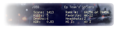 | Headshots | 2 | Suicides | 0 | Headshot / Kill | 40 % |