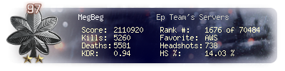 | Headshots | 308 | Suicides | 113 | Headshot / Kill | 14.36 % |