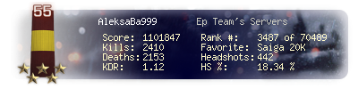 | Headshots | 442 | Suicides | 44 | Headshot / Kill | 18.34 % |