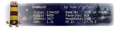 | Kills | 4459 | Deaths | 3407 | Kill / Death | 1.31 |