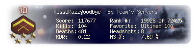 | Kill-streak | 3 | Death-streak | 48 | Team Kills | 1 |
