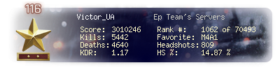 | Headshots | 541 | Suicides | 17 | Headshot / Kill | 13.39 % |