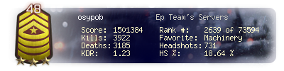 | Kills | 3612 | Deaths | 2943 | Kill / Death | 1.23 |