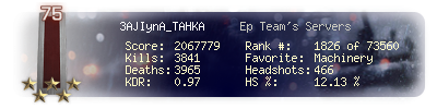 | Headshots | 401 | Suicides | 26 | Headshot / Kill | 11.46 % |