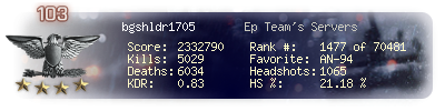 | Kill-streak | 10 | Death-streak | 21 | Team Kills | 10 |