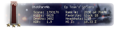 | Kills | 910 | Deaths | 362 | Kill / Death | 2.51 |