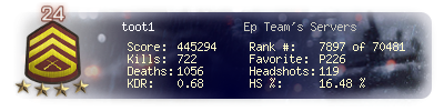 | Kills | 722 | Deaths | 1056 | Kill / Death | 0.68 |