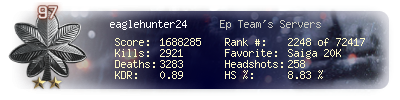 | Headshots | 258 | Suicides | 69 | Headshot / Kill | 8.83 % |