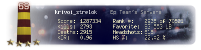 | Headshots | 615 | Suicides | 34 | Headshot / Kill | 22.02 % |