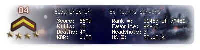 | Kill-streak | 2 | Death-streak | 9 | Team Kills | 0 |
