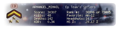 | Kills | 48 | Deaths | 142 | Kill / Death | 0.34 |