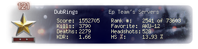 | Kills | 2964 | Deaths | 1694 | Kill / Death | 1.75 |