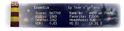 | Headshots | 316 | Suicides | 26 | Headshot / Kill | 16.91 % |
