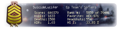 | Headshots | 554 | Suicides | 11 | Headshot / Kill | 33.93 % |