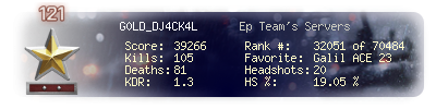 | Kills | 105 | Deaths | 81 | Kill / Death | 1.3 |