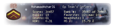 | Kill-streak | 7 | Death-streak | 16 | Team Kills | 0 |