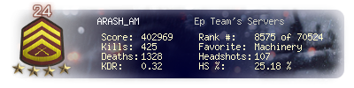 | Kills | 425 | Deaths | 1328 | Kill / Death | 0.32 |