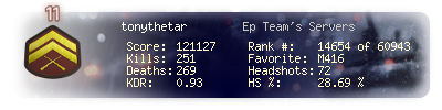 | Headshots | 72 | Suicides | 3 | Headshot / Kill | 28.69 % |