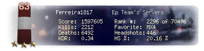 | Kills | 289 | Deaths | 1381 | Kill / Death | 0.21 |