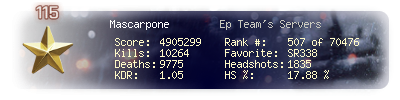 | Kills | 10264 | Deaths | 9775 | Kill / Death | 1.05 |