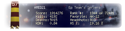| Headshots | 803 | Suicides | 69 | Headshot / Kill | 19.16 % |