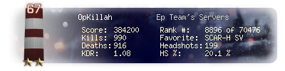 | Kill-streak | 13 | Death-streak | 13 | Team Kills | 0 |