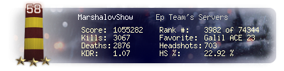 | Headshots | 703 | Suicides | 20 | Headshot / Kill | 22.92 % |