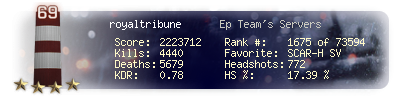 | Kills | 1700 | Deaths | 2293 | Kill / Death | 0.74 |