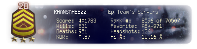 | Kill-streak | 7 | Death-streak | 16 | Team Kills | 1 |