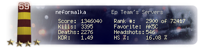 | Kills | 3395 | Deaths | 2276 | Kill / Death | 1.49 |