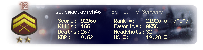 | Kill-streak | 4 | Death-streak | 10 | Team Kills | 0 |