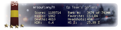 | Headshots | 390 | Suicides | 22 | Headshot / Kill | 26.69 % |