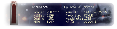 | Headshots | 1000 | Suicides | 27 | Headshot / Kill | 26.09 % |