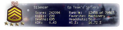 | Kills | 297 | Deaths | 689 | Kill / Death | 0.43 |