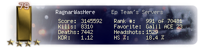 | Headshots | 1529 | Suicides | 51 | Headshot / Kill | 18.4 % |
