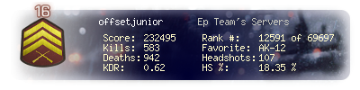 | Kill-streak | 6 | Death-streak | 12 | Team Kills | 0 |
