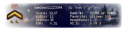 | Kill-streak | 3 | Death-streak | 9 | Team Kills | 0 |