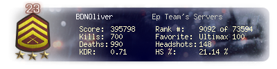 | Kill-streak | 13 | Death-streak | 16 | Team Kills | 0 |