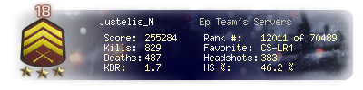 | Kills | 829 | Deaths | 487 | Kill / Death | 1.7 |