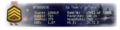 | Kill-streak | 15 | Death-streak | 7 | Team Kills | 0 |