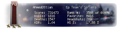 | Headshots | 289 | Suicides | 15 | Headshot / Kill | 17.88 % |