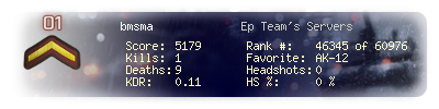 | Kills | 1 | Deaths | 9 | Kill / Death | 0.11 |