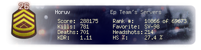 | Headshots | 214 | Suicides | 10 | Headshot / Kill | 27.4 % |