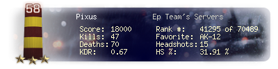 | Headshots | 15 | Suicides | 0 | Headshot / Kill | 31.91 % |