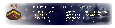 | Headshots | 12 | Suicides | 1 | Headshot / Kill | 23.08 % |