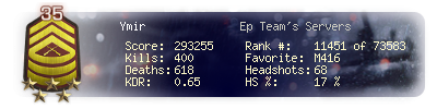 | Headshots | 0 | Suicides | 0 | Headshot / Kill | 0 % |