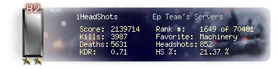 | Headshots | 588 | Suicides | 47 | Headshot / Kill | 19.65 % |