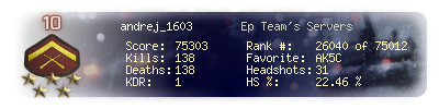 | Kill-streak | 7 | Death-streak | 8 | Team Kills | 0 |