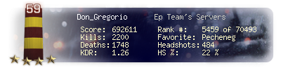 | Kills | 2200 | Deaths | 1748 | Kill / Death | 1.26 |