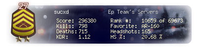 | Headshots | 165 | Suicides | 7 | Headshot / Kill | 20.68 % |